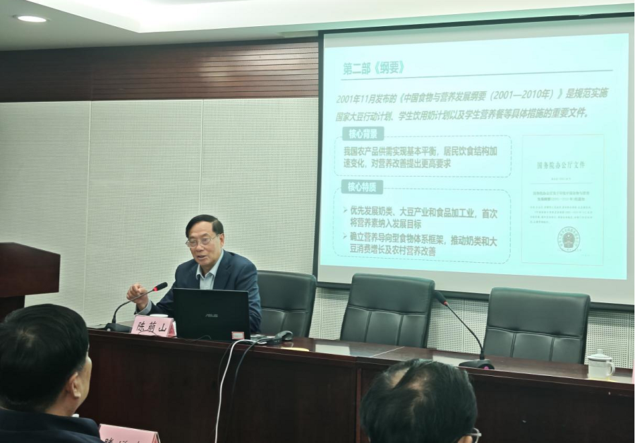 12月16日,國家糧食和物資儲備局科學(xué)研究院舉辦第55期“糧科大講堂”,邀請國家食物與營養(yǎng)咨詢委員會主任、中國農(nóng)業(yè)技術(shù)經(jīng)濟(jì)學(xué)會會長陳萌山作“貫徹落實(shí)新綱要精神,推動食物營養(yǎng)健康產(chǎn)業(yè)高質(zhì)量發(fā)展”專題學(xué)術(shù)報告。局總工程師、院黨委書記滕增泰,院黨委副書記、院長譚本剛出席。
